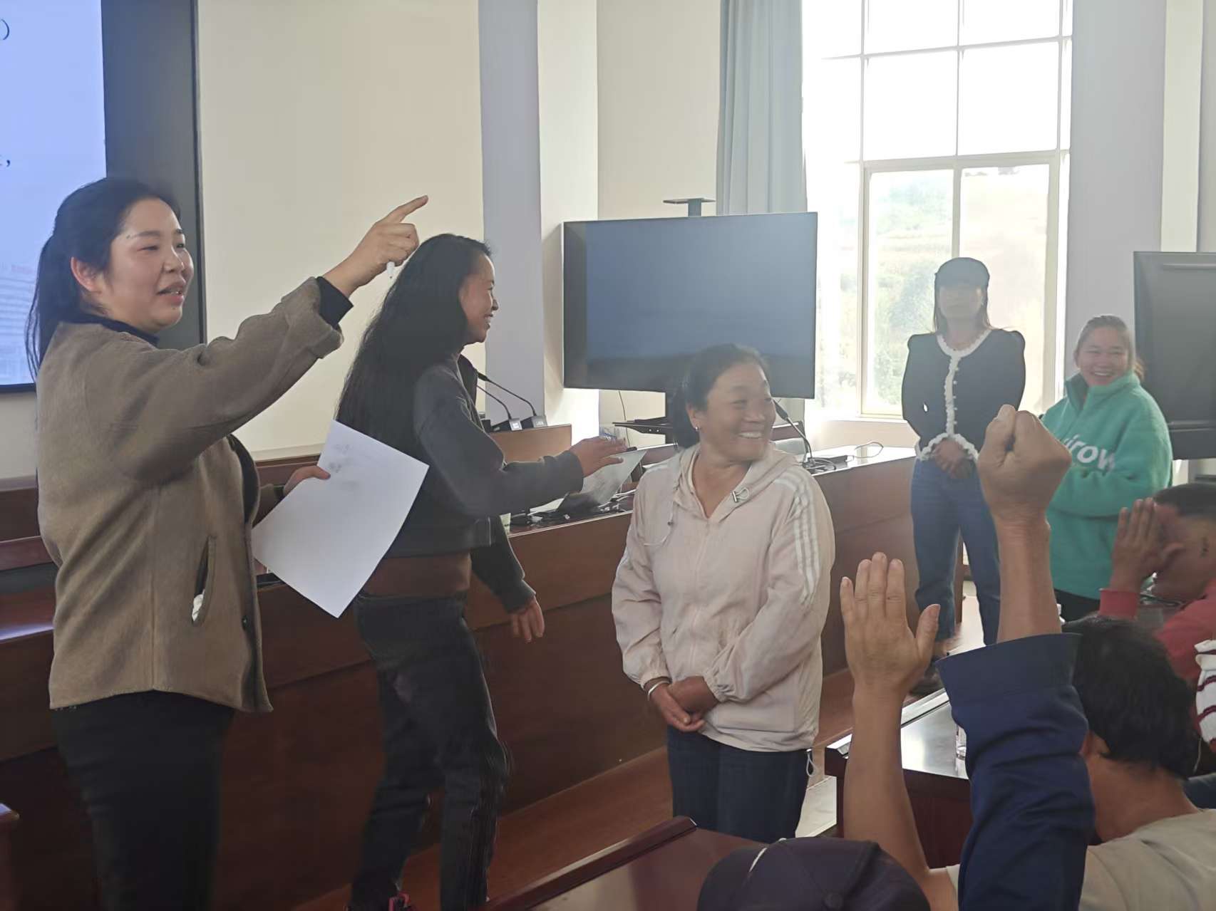 针对孩子乱涂乱画、随意丢弃物品等常见场景,洪英老师现场拆解“行为+感受+影响”的沟通公式,引导家长通过场景模拟亲身体验,纠正以往过激沟通方式与偏差教育行为。鲜活的案例、实用的技巧引发家长强烈共鸣,现场互动频频、反响热烈。活动尾声,乡党群服务中心为积极参与讲座互动的家长兑换了笔、钥匙扣等积分奖励,进一步激发了大家的参与热情。