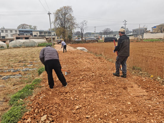 针对部分机耕路路面坑洼、农机通行困难,以及灌溉沟渠淤塞、排水不畅等影响春耕生产的实际问题,村党总支充分发挥战斗堡垒作用,通过召开动员会、党员带头示范等方式,迅速凝聚党群合力。行动中,村组干部靠前指挥,带头挥锹铲土;党员冲锋在前,主动承担急难险重任务;广大群众积极响应,自带工具投入劳动。大家分工协作,有序推进路面坑槽填补、沟渠淤泥杂草清理、路肩边坡平整等各项工序,现场组织有序、配合紧密。